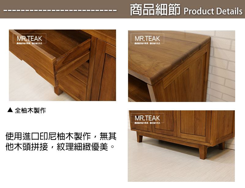 柚木先生所販售的柚木家具均使用100%實木,絕不使用任何人造材質製作,如貼皮、劣質木混充,或是木屑再次壓縮成材之木頭。