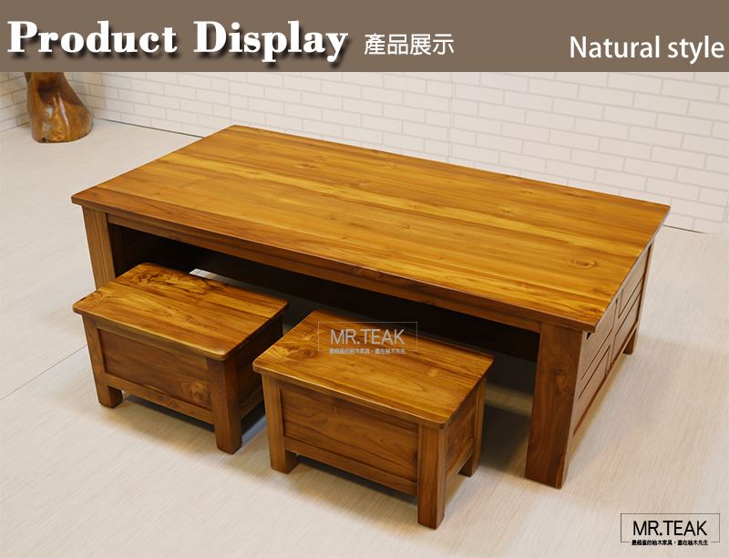柚木先生所販售的柚木家具均使用100%實木,絕不使用任何人造材質製作,如貼皮、劣質木混充,或是木屑再次壓縮成材之木頭。